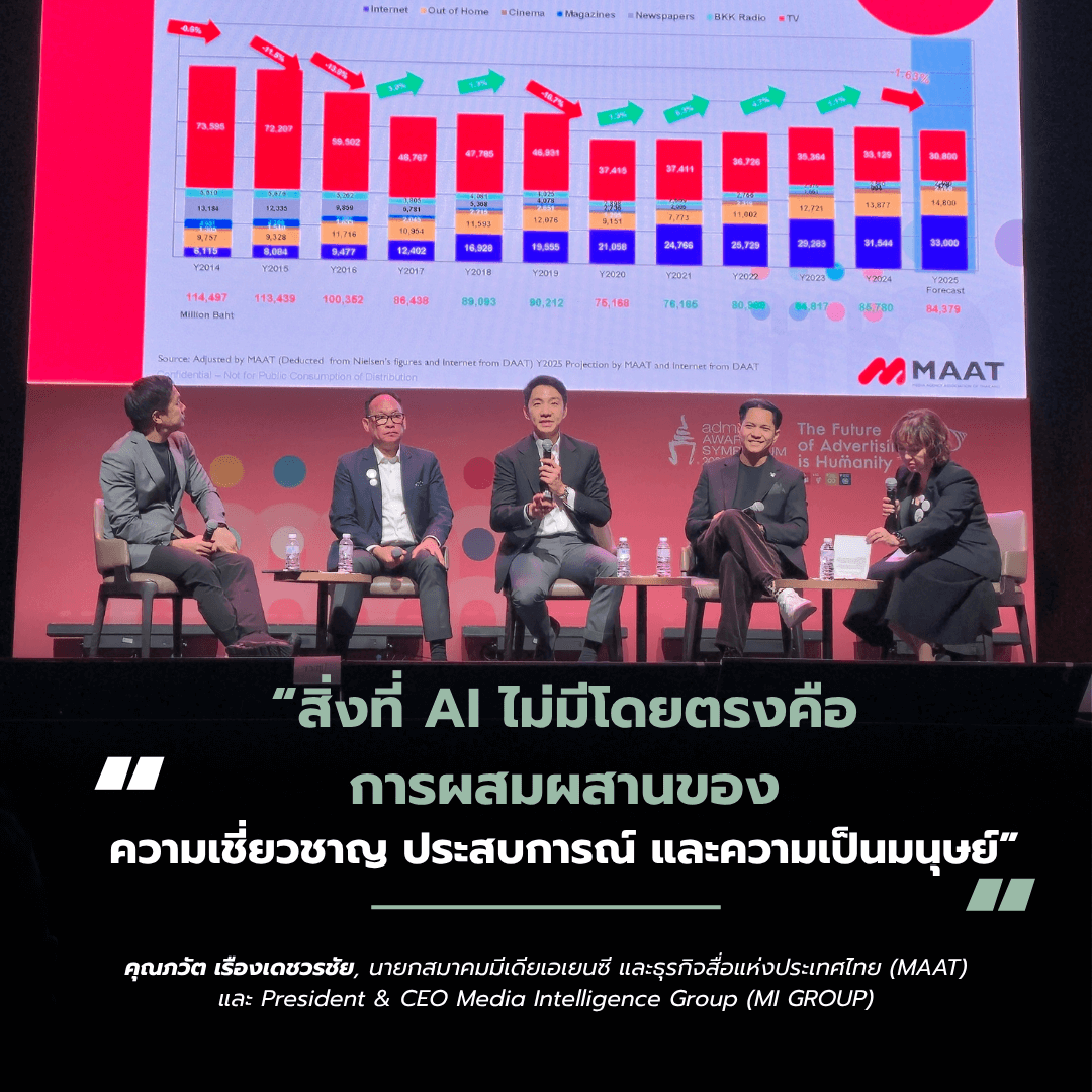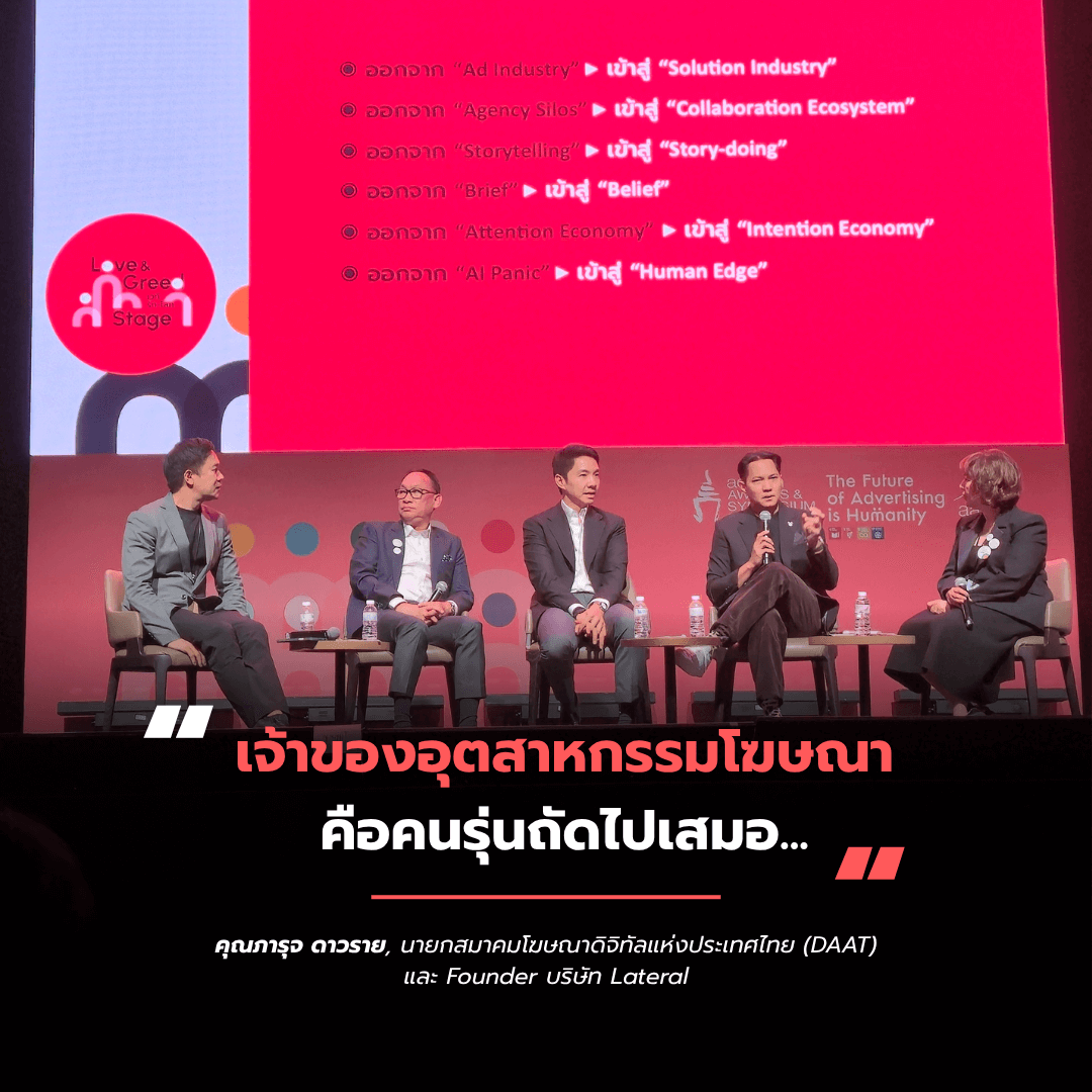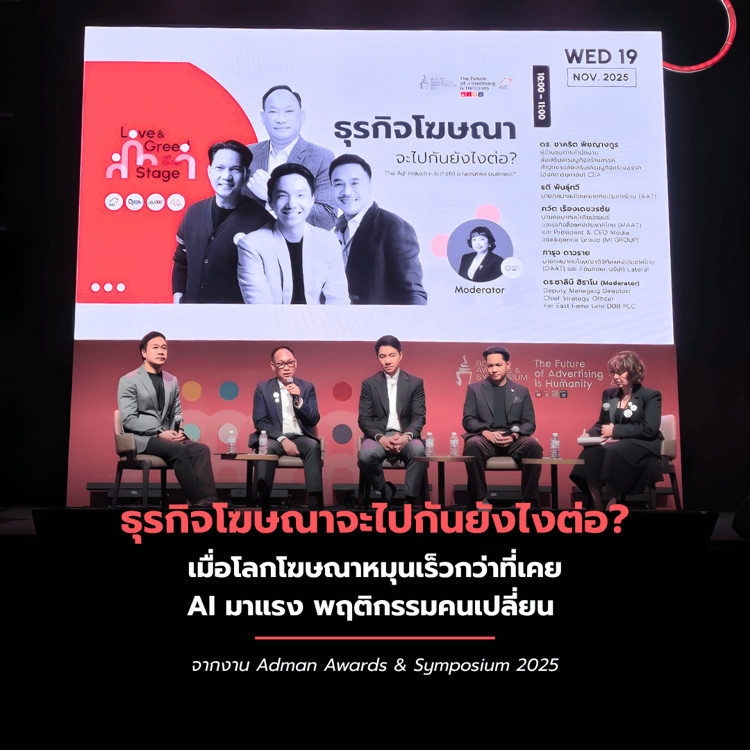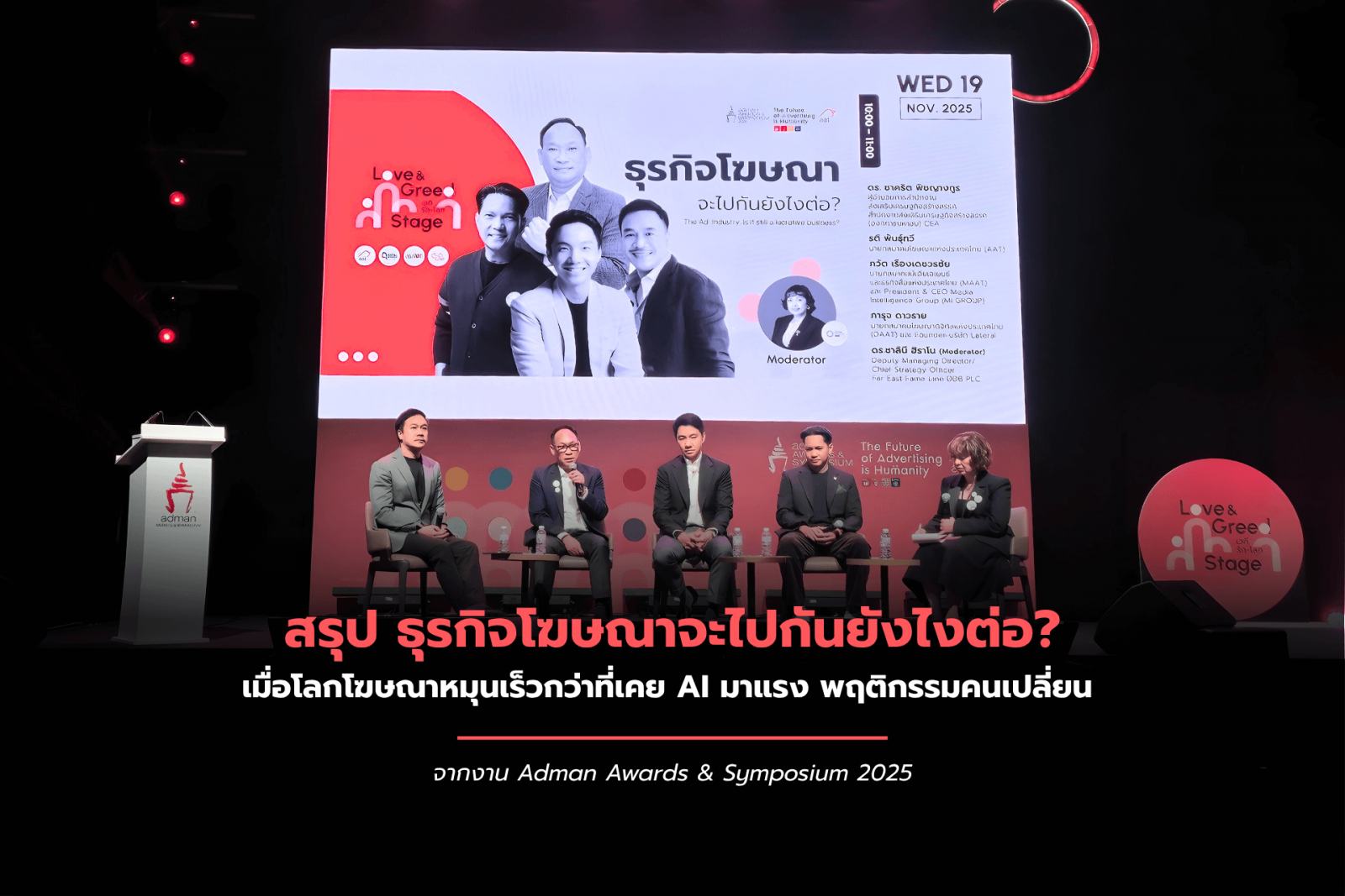 โดย คุณรติ พันธุ์ทวี, คุณภวัต เรืองเดชวรชัย, คุณภารุจ ดาวรา และ ดร.ชาคริต พิชญางกูร กับมุมมองผู้นำทั้ง 4 แห่งวงการโฆษณาและสื่อไทย ในงาน Adman Awards & Symposium 2025