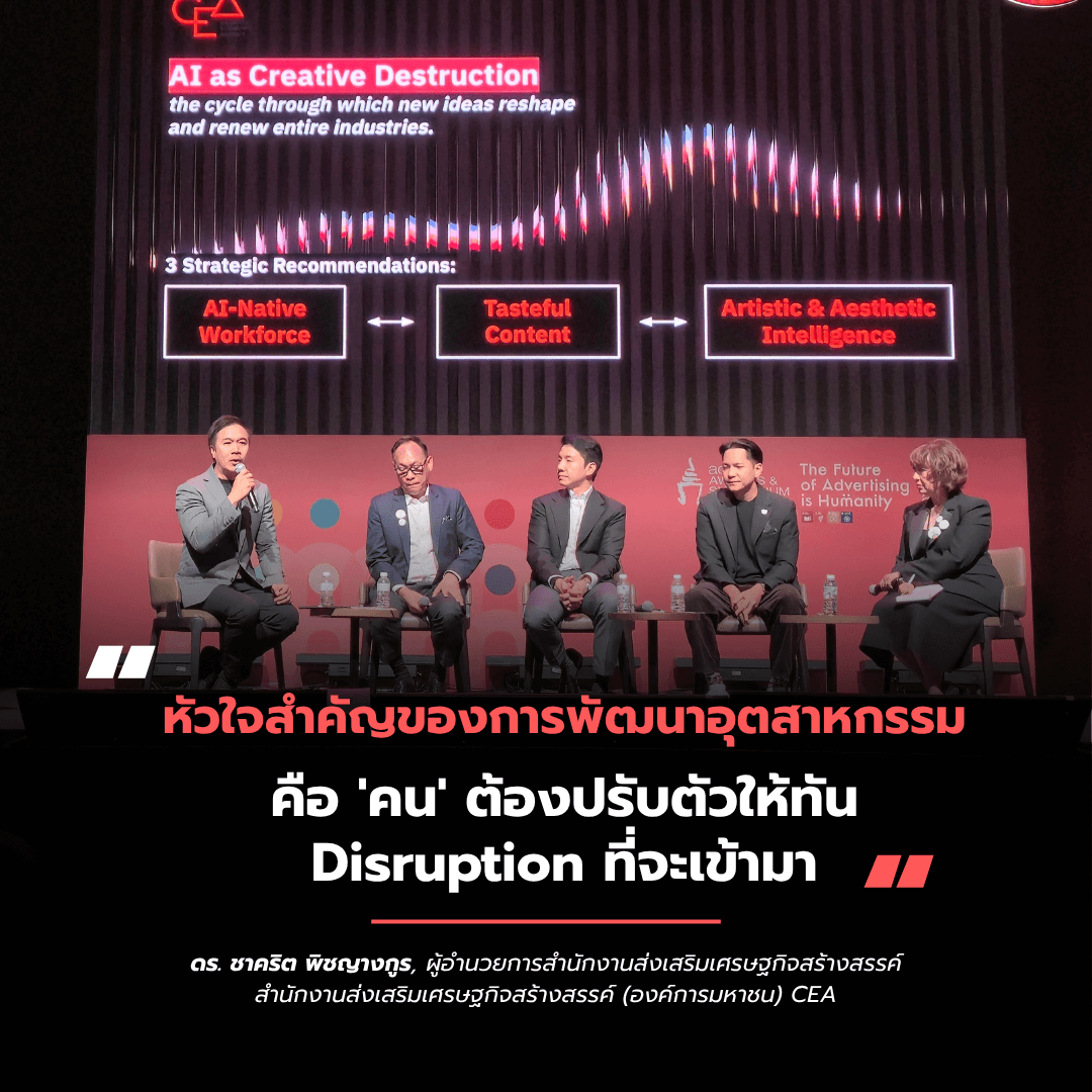 - หัวใจสำคัญของการพัฒนาอุตสาหกรรมคือ "คน" ต้องปรับตัวให้ทันต่อการเปลี่ยนแปลงโครงสร้างอุตสาหกรรมที่มี AI เข้ามามีบทบาทหลัก